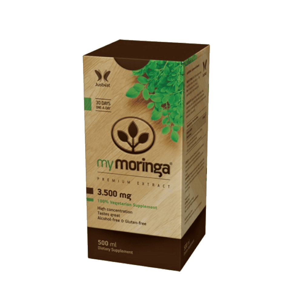 Água, Moringa oleifera (fruto, semente), Antioxidante (ácido L-ascórbico), Estabilizador (goma xantana), Conservante (sorbato de potássio, benzoato de sódio), Aroma (maçã), Edulcorante (glicosídeos de esteviol).