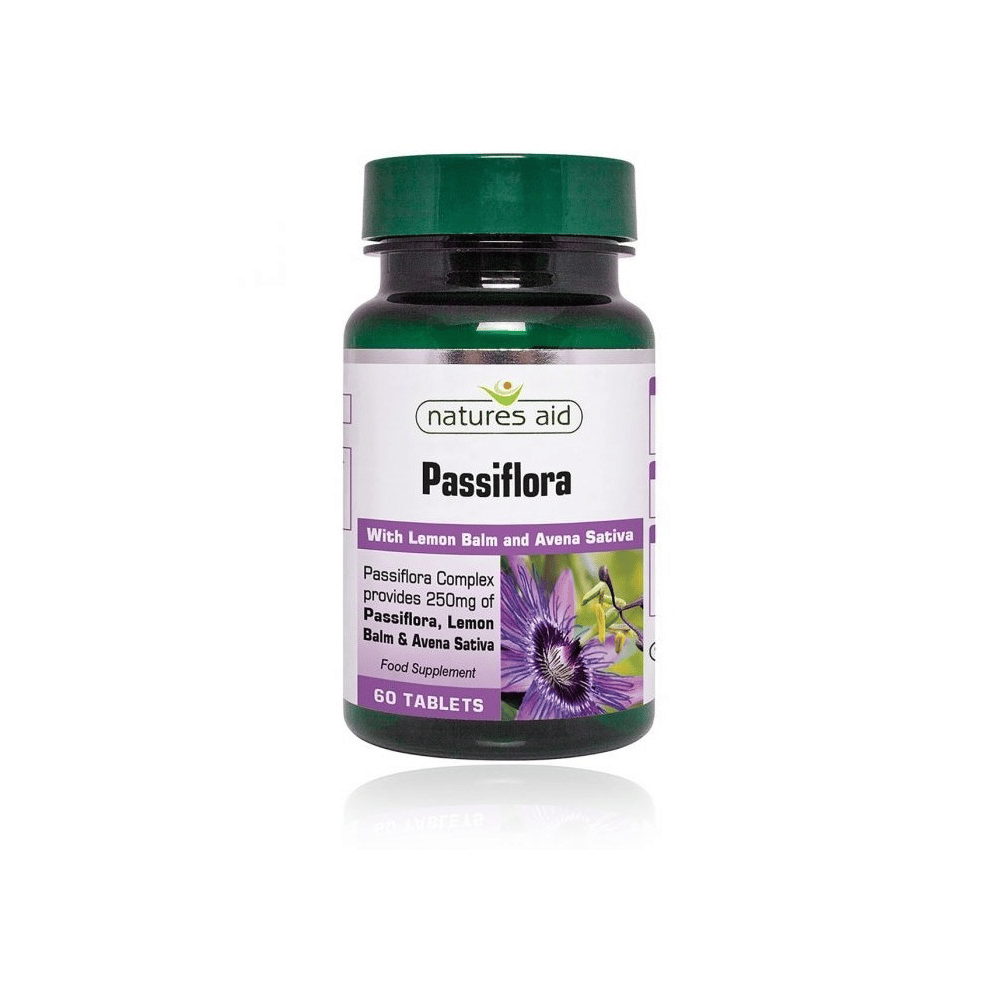Passiflora com Melissa e Aveia da Natures Aid é um suplemento alimentar que funciona como um calmante natural sendo útil em situações de ansiedade e stress e para melhorar a qualidade do sono.