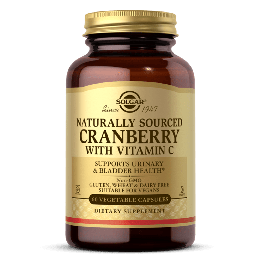 Solgar Cranberry com Vitamina C fornece 500 mg de concentrado de cranberry (arando vermelho) por cápsula. A vitamina C contribui para o normal funcionamento do sistema imunitário. 1 cápsulas tomadas de acordo com o modo de tomar descrito contribui com a dose diária significativa de vitamina C para se obter o efeito benéfico descrito.