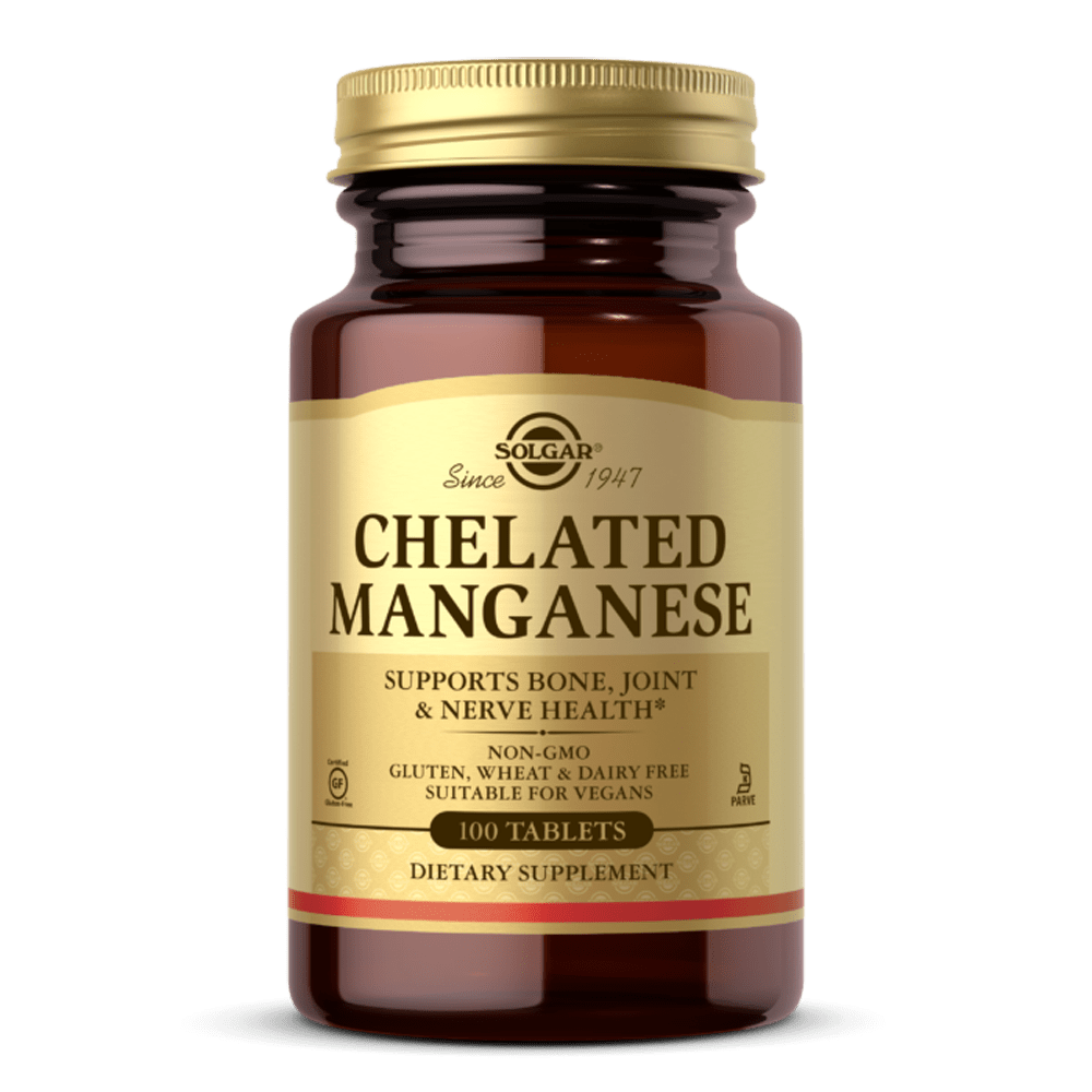 Solgar Manganês Quelatado fornece 8mg de manganês por cápsula.