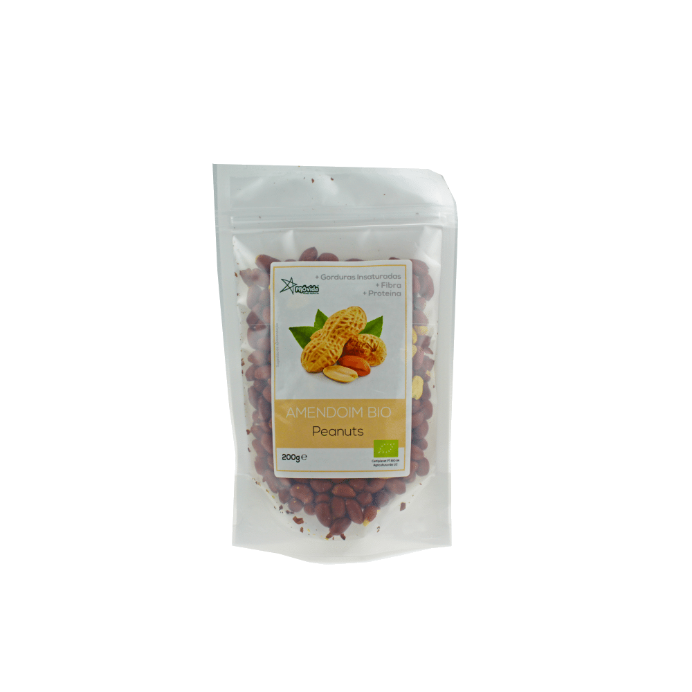Amendoim tostado com pele de produção biológica.