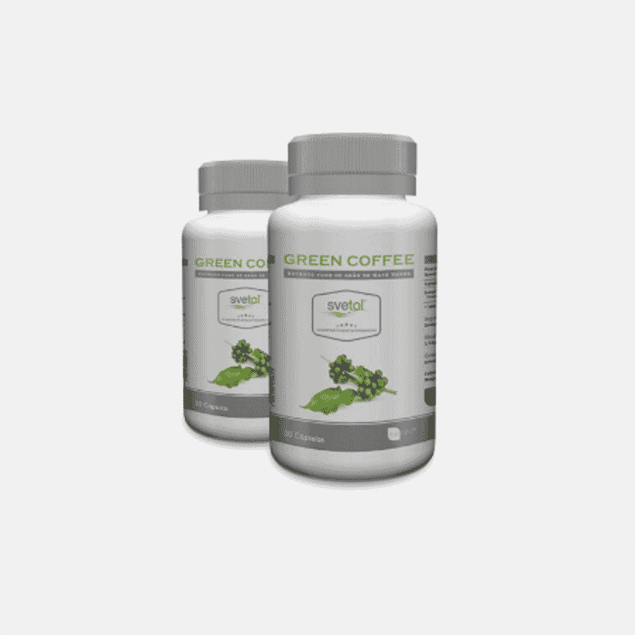 Café Verde (Coffea arabica) extrato seco da semente com > 45% Ácido Clorogénico, Gelatina (cápsula).